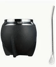 Mate y bombilla acero inoxidable tipo torpedo Negro doble pared al vacío