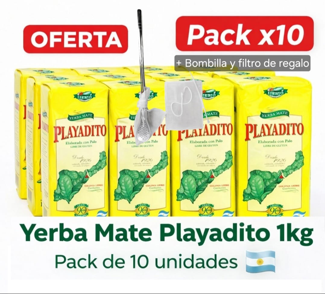 Pack ahorro 10Kg Yerba Playadito 1kg oferta (bombilla de regalo)