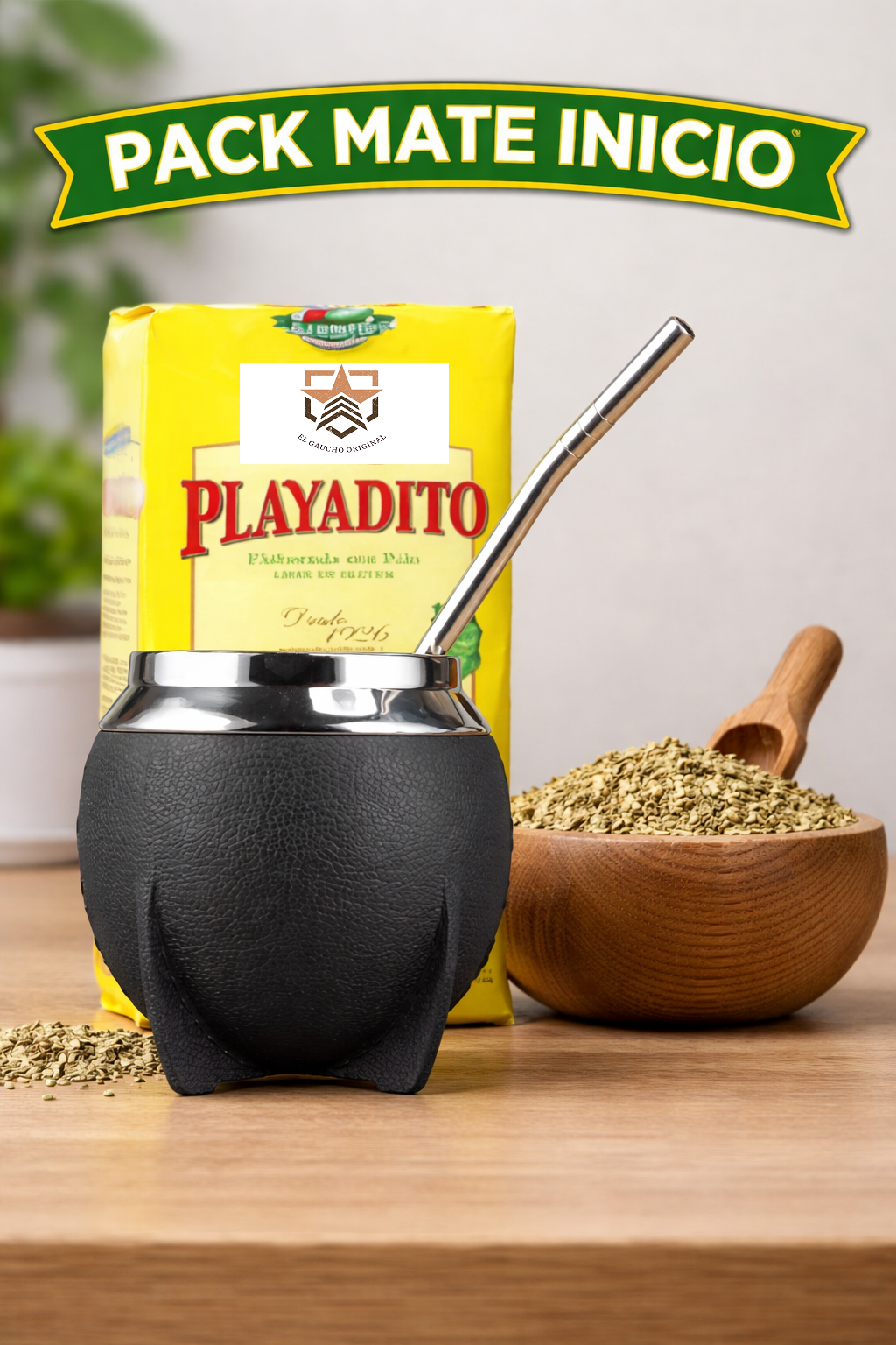 Mate acero tipo torpedo y bombilla y yerba mate tradicional para empezar a tomar mate, con una yerba clásica, sabor tradicional.