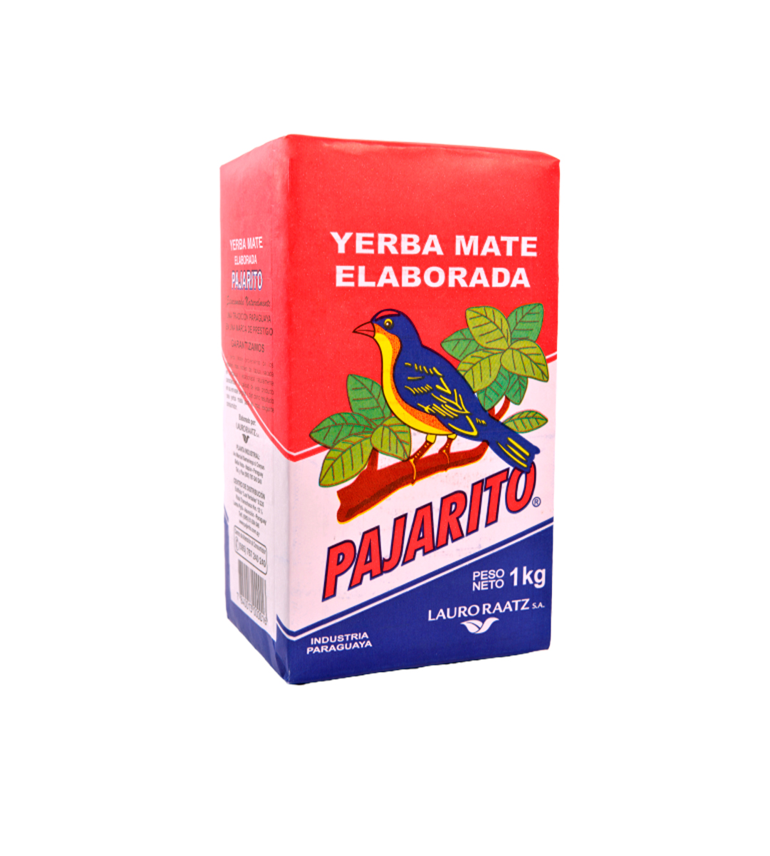 La yerba mate Pajarito tradicional en su envase original proveniente de los más nobles y mejores yerbales de Itapúa, Paraguay. Secada en barbacuá y estacionada por dos años en depósitos secos e higiénicos, tiene un contenido de palos del 25 al 30% que da como resultado la tradicional yerba mate con propiedades únicas, sabor intenso y aroma característico.