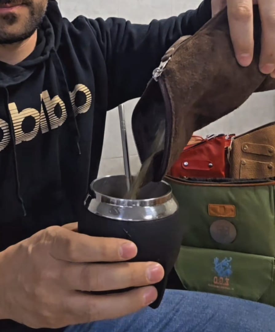 Yerberos de cuero de vaca hechos en Argentina El Gaucho original para 250g aproximado de yerba mate